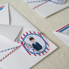 En nuestro caso hemos utilizado washi tape para las esquinas, unas letras de madera, unas cintas y hemos dejado un espacio para que el peque ponga su nombre.
