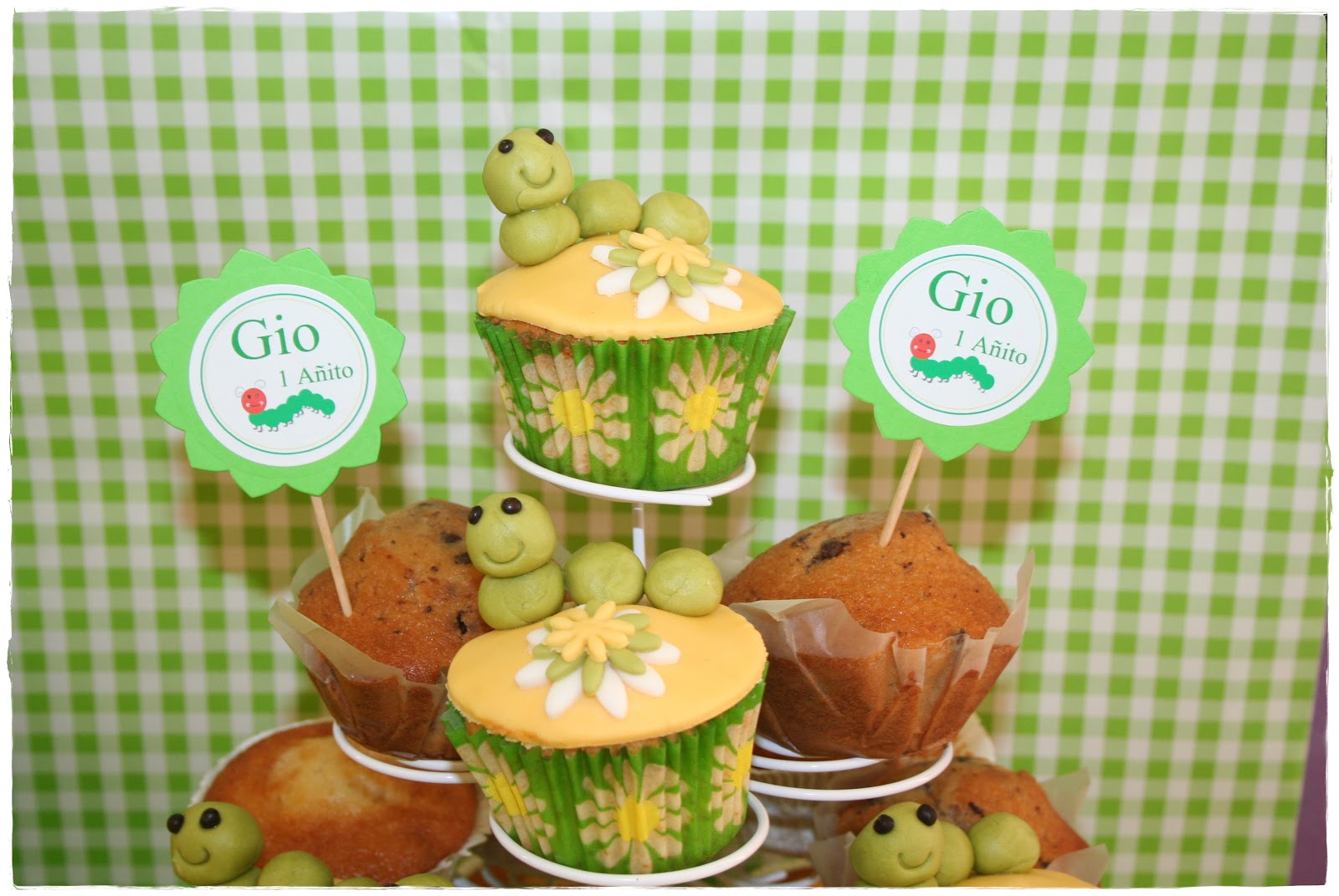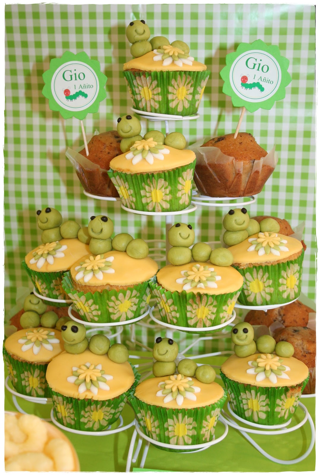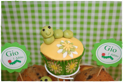 Otra parte del buffet que llamaba mucho la atención fue la zona donde estaban colocadas las maravillosas cupcakes, decoradas exquisitamente cada una con su gusanito y su flor…no me digáis que no son ideales..