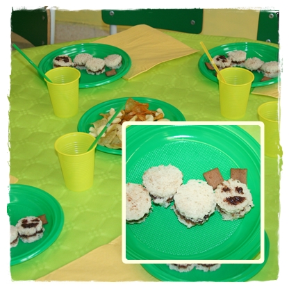 La mamá de Gio quería hacer algo divertido para la merienda de los peques..así que hicimos estos gusanitos con pan de molde y cereales. Los pequeños invitados se quedaron con la boca abierta..jijij..hasta que lo probaron y no dejaron ni rastro!!
