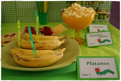 En este caso optamos por una base dulce pero con elementos sanos…intentando reproducir todos aquellos alimentos que son los preferidos por los «gusanitos»… frutas variadas: manzanas, naranjas, peras, plátanos, fresas….delicioso todo!!