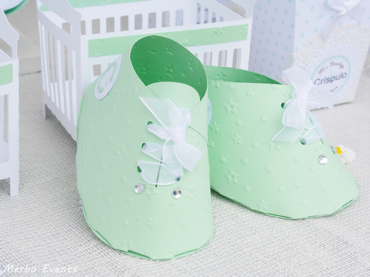 Como detalles especiales hicimos estas cunitas y unos zapatitos.