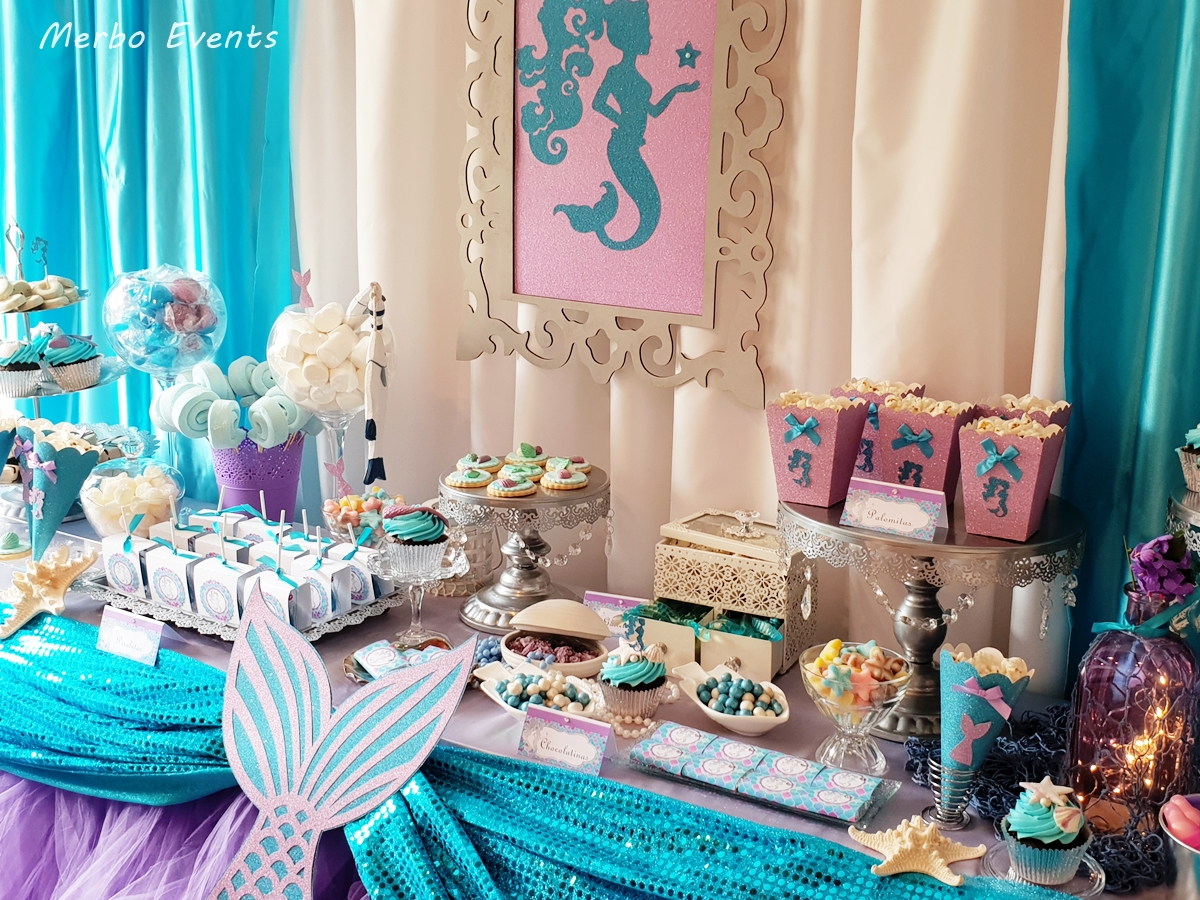 Nuestro diseño gráfico inspirado en las escamas de las colas de las sirenas, con toques plateados, lilas y turquesa nos dejó enamoradas. Piruletas, chocolatinas…