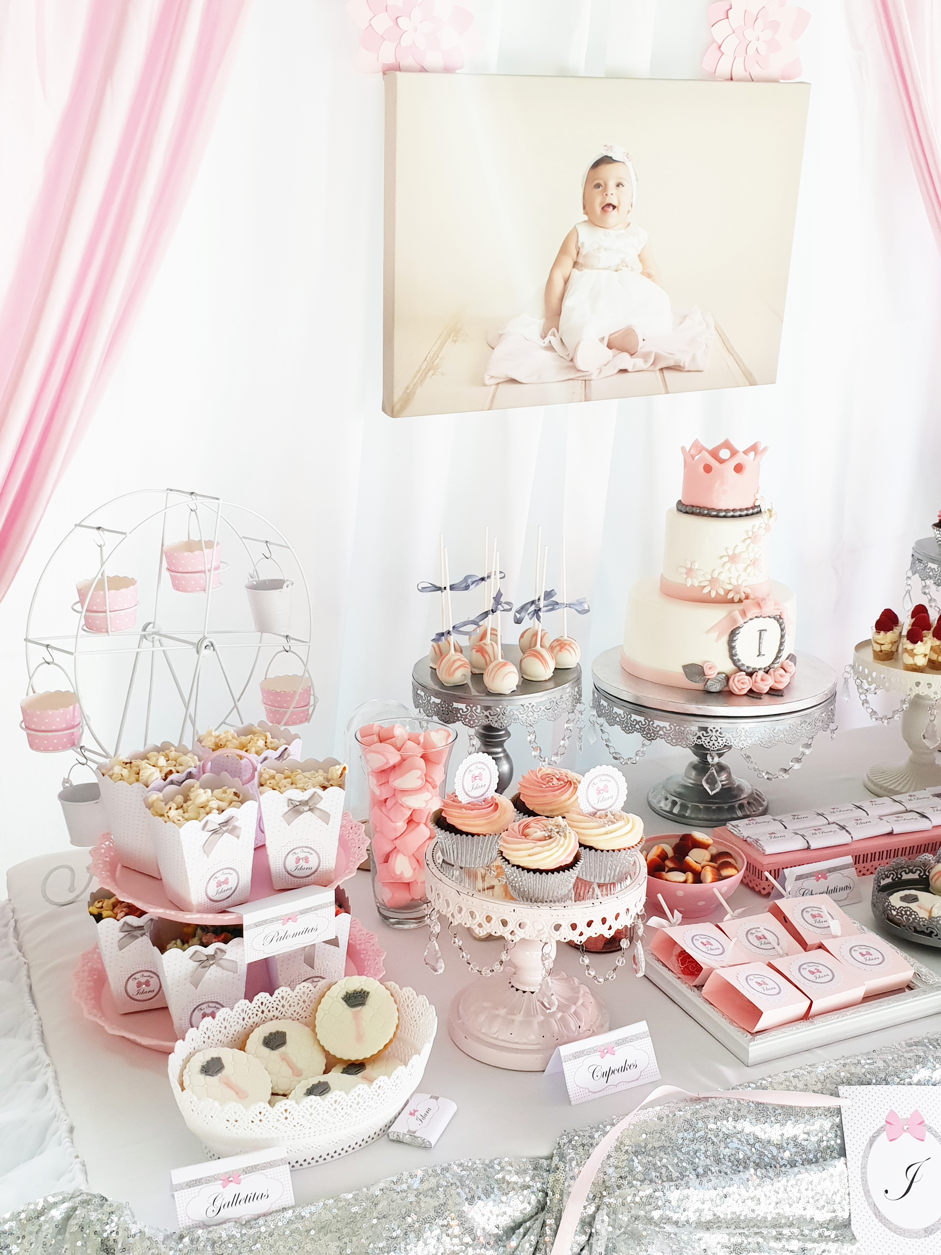 Empezamos con los detalles de la mesa dulce; delicioso cupcakes, galletitas digna de una princesa y toda la papelería totalmente personalizada…