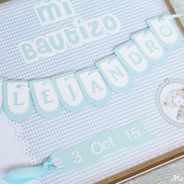 Preparamos varios banderines; uno con el nombre de Miguel y otro con «Mi comunión»