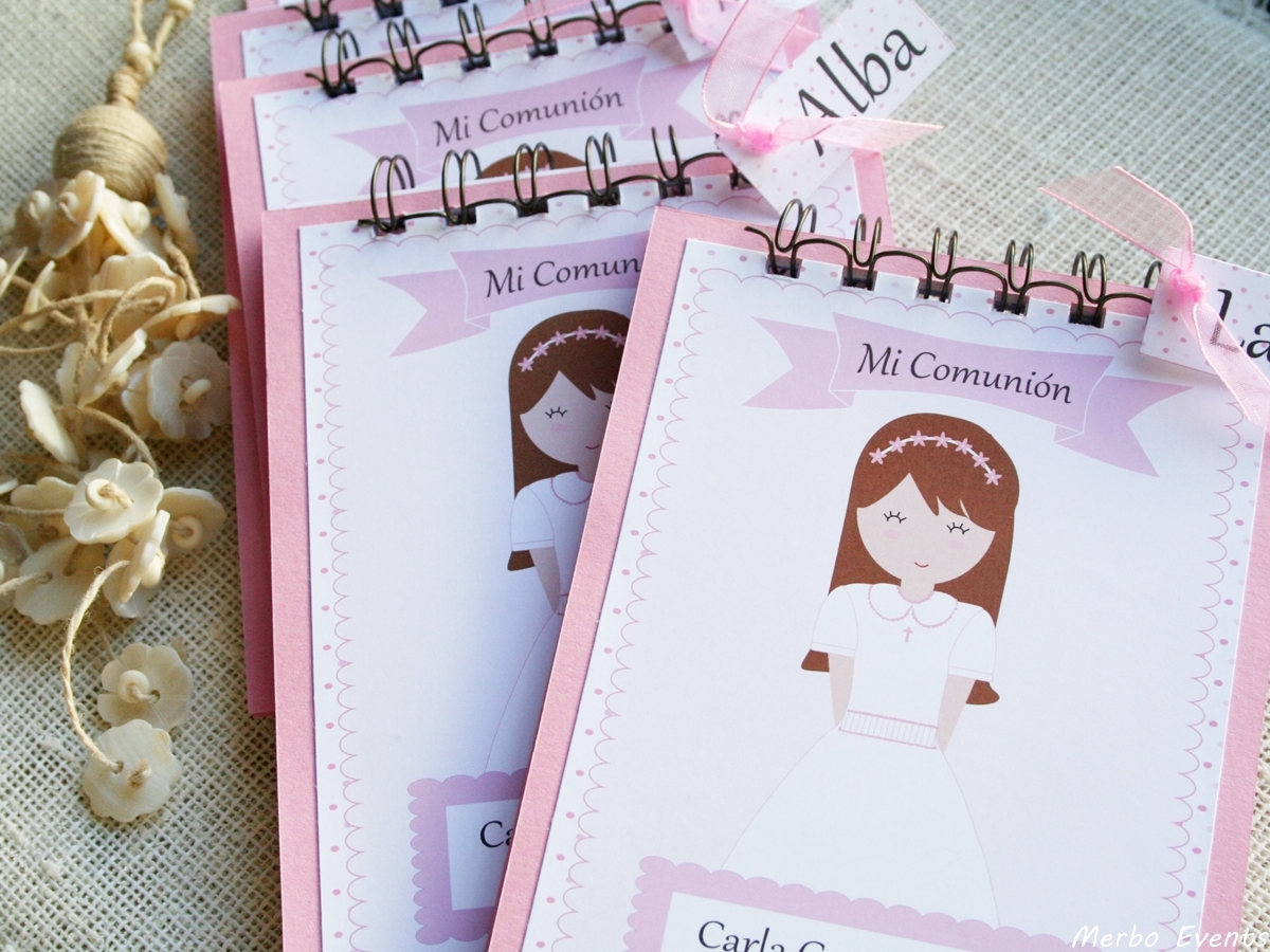 Ahora os queremos enseñar estas libretitas que personalizamos para todas las niñas y niños que fueron a su comunión.