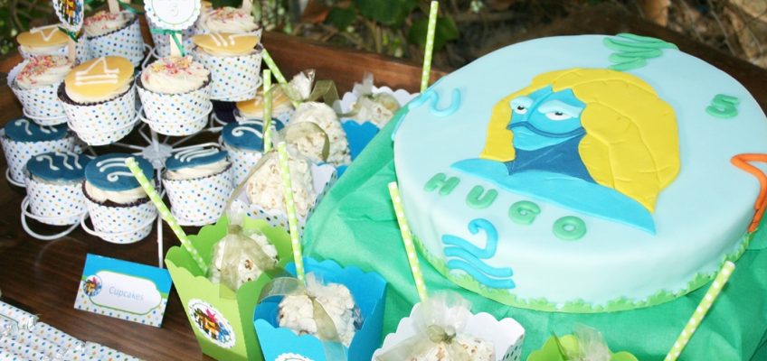 Preparamos una larga mesa donde cada invitado tenia la careta de uno de los personajes de la serie… todo un éxito!