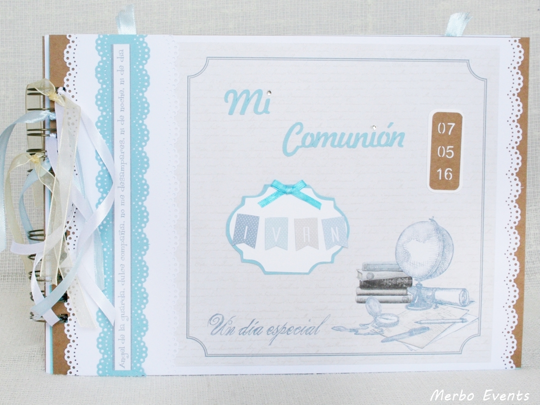 En este caso la mamá de Ivan quería algo delicado en tonos azules y beig.. siguiendo la misma linea de los otros libros de Comunión, el resultado fue este: